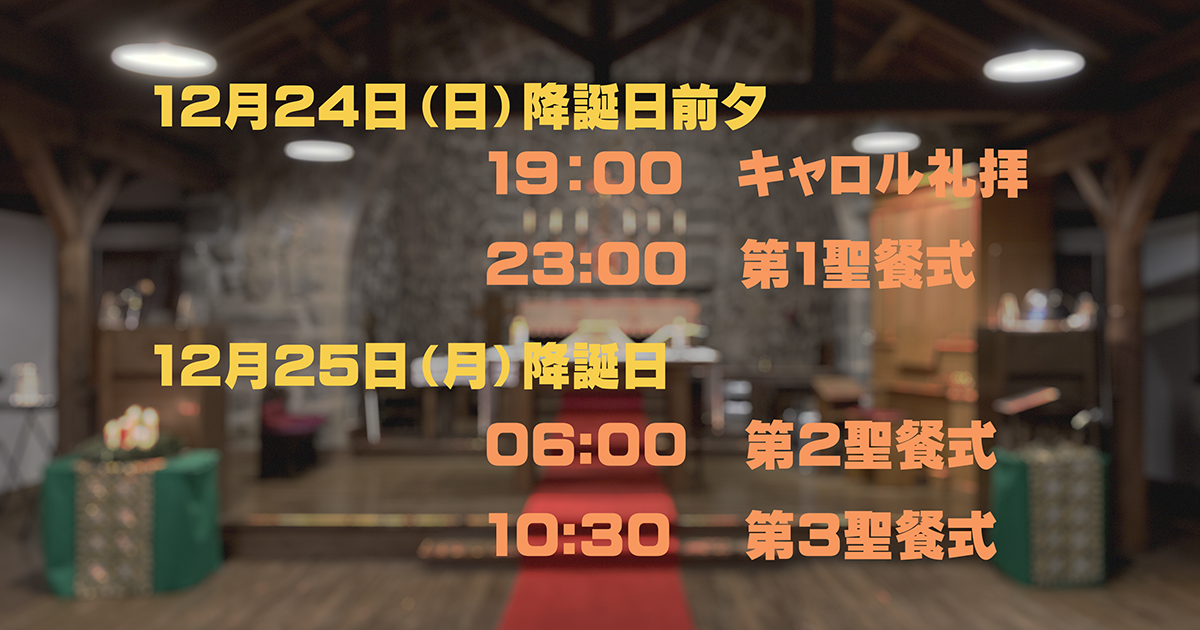 12月24・25日、降誕日に関わる礼拝予定をおしらせします。